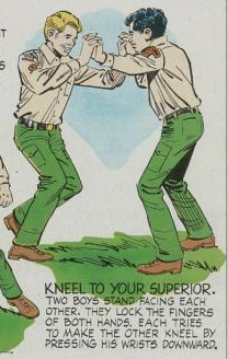 The Boys’ Life archives also provides a powerful barometer of broader social and political trends. Historians of physical culture and fitness can find a series of “fitness tests”: from 1940 (“How long can you hold your breath? 30 seconds is fair, 60 seconds good.”) to 1957 (a series of push-ups, pull-ups, and sit-ups, as well as the “recovery index”) to 1987 (organized horseplay, including “Kneel to your superior” and a “Duck fight”).